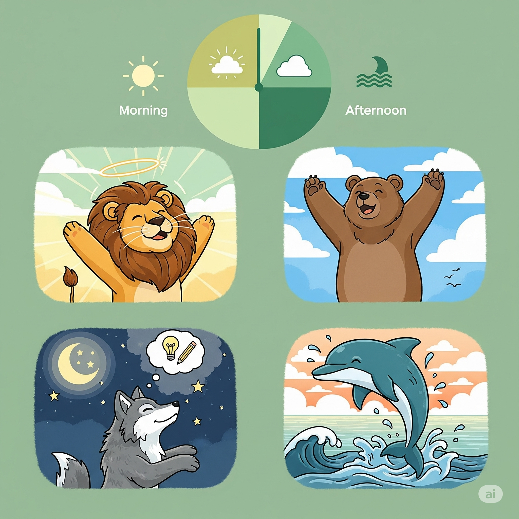 나는 어떤 동물일까? 4가지 크로노타입 알아보기 🦁🐻🐺🐬